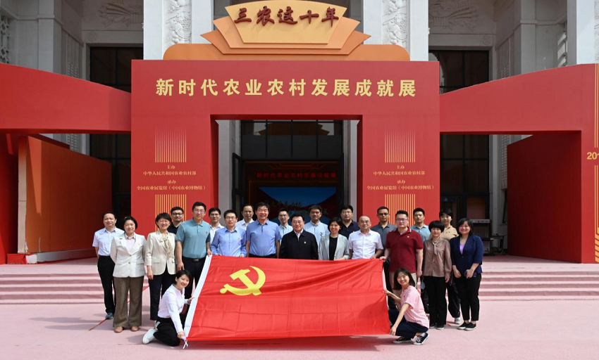 为进一步巩固会议成果,农业农村部办公厅第五党支部邀请国台办新闻局党支部赴全国农业展览馆,与该馆农博综合支部、农史研究支部联合开展“感悟三农成就·体验小满春播”主题党日活动。办公厅机关党委副书记、一级巡视员蒋建平,办公厅副主任丁斌,国台办新闻局副局长、发言人朱凤莲,全国农业展览馆党委书记隋斌,党委副书记、馆长李迎宾,党委委员、副馆长陈军,以及四个支部20余名党员干部参加活动。